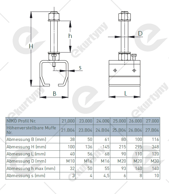 - Przeznaczony do montażu szyn podwieszanych NIKO serii 26.